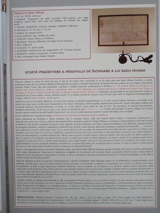 Hrisovul lui Radu Mihnea de inchinare a manastirii Galata Bisericii Sfantului Mormant din Ierusalim